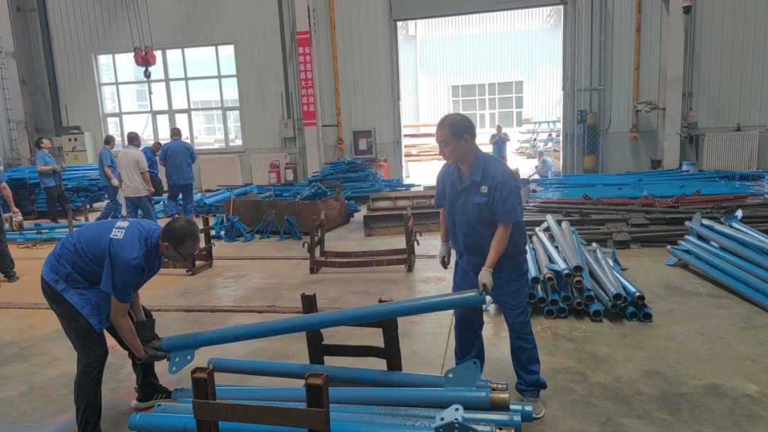 今年鉆探裝備事業(yè)部生產(chǎn)經(jīng)營(yíng)形勢(shì)明顯好轉(zhuǎn),呈產(chǎn)銷兩旺態(tài)勢(shì),近日有五部SGX17型鉆塔要出庫(kù)發(fā)貨。因客戶要的急,事業(yè)部人手不夠,事業(yè)部緊急向總部第二黨支部求援。支部書記雷勇立即組織支部部分黨員和群眾成立突擊小組第一時(shí)間進(jìn)入車間,為加快工作進(jìn)度我們進(jìn)行了分工配合。二支部突擊小組負(fù)責(zé)5部鉆塔的所有部件進(jìn)行分類、歸堆、標(biāo)號(hào),鉆探裝備事業(yè)部生產(chǎn)支部突擊隊(duì)負(fù)責(zé)鉆塔的清點(diǎn)、打捆、辦理出庫(kù)手續(xù)。因正值盛夏,車間空氣悶熱,大家抬著幾十斤重的鉆塔部件,不一會(huì)就大汗淋漓,工作服全部濕透。平時(shí)大家在辦公室工作,沒有接觸這樣的體力勞動(dòng),真有點(diǎn)不適應(yīng),為了任務(wù)的完成,為了不拖后腿,大家都在咬牙堅(jiān)持,下午4點(diǎn)前順利完成任務(wù)。