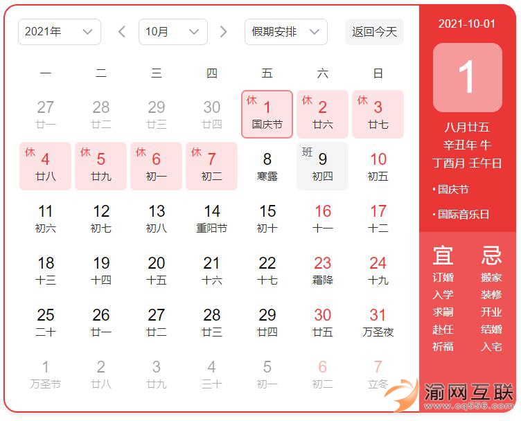 2021年國慶放假安排