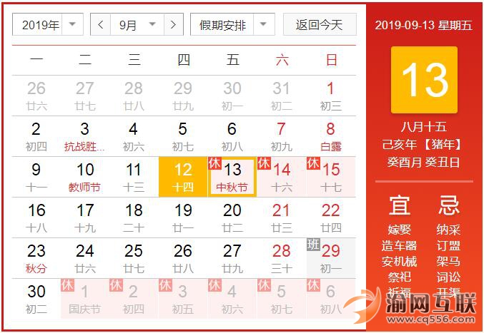 2019年中秋節(jié)放假時(shí)間安排:9月13日中秋節(jié)放假休息,14日、15日正常休息。