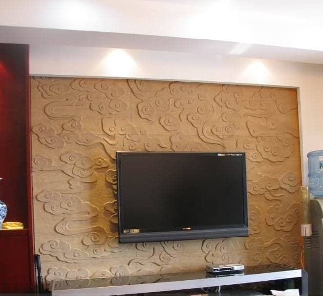 砂巖是一種無光污染,無輻射的優(yōu)質(zhì)天然石材,對(duì)人體無放射性傷害。很多設(shè)計(jì)師都將它應(yīng)用于沙發(fā)背景、電視背景墻的裝飾。在客廳用紋理粗獷的砂巖鑲嵌出一面仿古意味的主體墻作電視背景墻,既可以吸音,又能烘托出家電的金屬質(zhì)感,形成強(qiáng)烈的對(duì)比,十分具有現(xiàn)代感,又透露出一種視覺上的愉悅, 能體現(xiàn)主人的個(gè)性與 品味的。