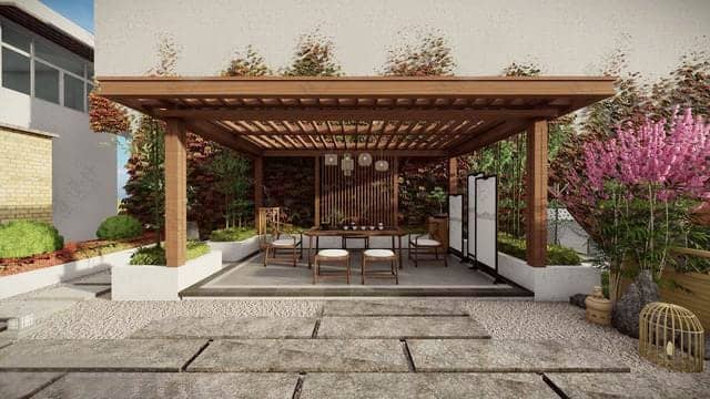 現(xiàn)代風(fēng)格已成為建筑藝術(shù)的一個重要趨勢,因?yàn)槟茉黾臃孔拥囊曈X吸引力。涼亭的主要目的是防止雨和陽光,同時也是與家人聚會,或者在浪漫的夜晚與朋友聚會的戶外區(qū)域。當(dāng)您計(jì)劃您的設(shè)計(jì)時,需要記住,這將是景看的一部分,必須與房子、圍欄、走道、橋梁、長凳、池塘和花壇以及任何其他景看設(shè)計(jì)元素和諧相處。