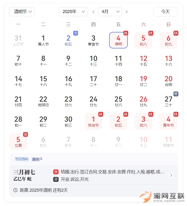2025清明節(jié)放假時(shí)間表